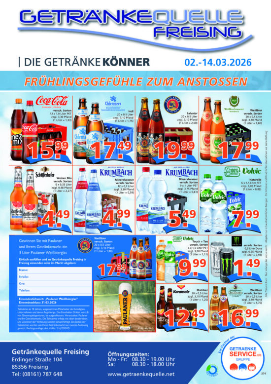 Abonnieren Sie unseren Newsletter, um stets über aktuelle Angebote in der Getränkequelle informiert zu werden.